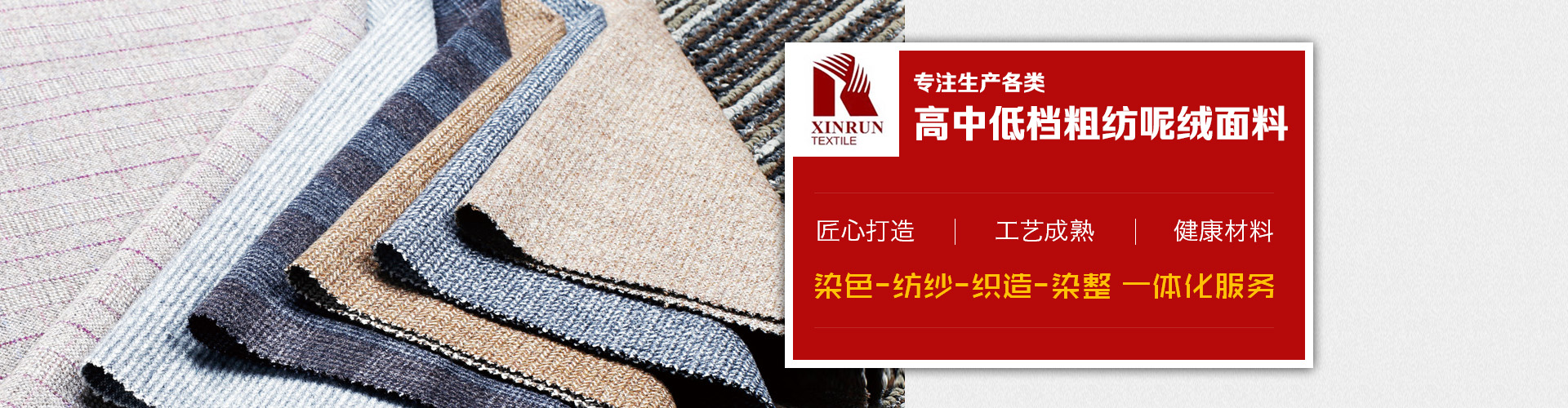 上海鑫潤(rùn)紡織品有限公司是一家從事開(kāi)發(fā),生產(chǎn),銷(xiāo)售為一體的毛紡面料公司,公司生產(chǎn)各類高中低檔粗紡呢絨面料,并下轄控股毛紡廠3家,擁有先進(jìn)的生產(chǎn)設(shè)備和的管理體系,不僅在國(guó)內(nèi)市場(chǎng)享有良好地信譽(yù),而且產(chǎn)品遠(yuǎn)銷(xiāo)美國(guó),歐洲,俄羅斯,韓國(guó),日本等不同國(guó)家,贏得了國(guó)外市場(chǎng)的一致好評(píng)。憑借優(yōu)良的品質(zhì),良好的信譽(yù),我公司還是ZARA,H&M,C&A,JACK&JONES,MANGO,TARGET,PROMODE,ORSAY等國(guó)外知名品牌的供應(yīng)商。